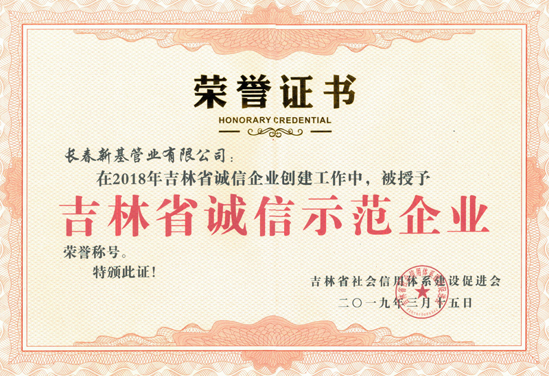 新基管業(yè)被授予“吉林省誠信示范企業(yè)”榮譽稱號