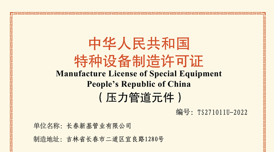 熱烈祝賀新基管業(yè)成功取得特種設(shè)備制造許可證(壓力管道元件)